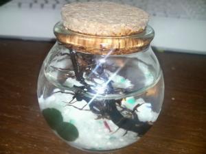 最近、仕事や家事でストレスをためてる方が多いですねみんなそれぞれにストレス解消してますか?おいしい物を食べたり旅行をしたりカラオケしたり・・・今日、夕方から家族でショッピングセンターへ買い物へその中の雑貨屋さんで、ちょっと癒し系の物を発見思わず買ってしまいました!見えにくいかも知れませんが、中には木と小石「まりも」2個それから「シーシュリンプ」が赤2匹、白1匹は入ってますこれは仕事場の机の上に置くつもりです仕事に疲れたら、これを見ながらコーヒータイムちょっとは癒されるかな~