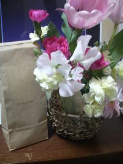 最近夜が遅かったせいか、お昼近くまで寝てました(_ _).。o○起きてふと横を見ると下の子がまだ寝ます。(似た物親子?)さてさて、先日知人から体調が優れない嫁さんにって、自分で作成した花かごとコーヒー豆をいただきましたついでにCDが付いていて、すべてがワンセットだそうです!大好きなコーヒーを飲みながらテーブルに花を置いて・・・ バックにはボサノバのCDをかけて和んでほしいとの事!ありがたいですね~その気遣いが (*^-゚)vィェィ♪今回初めてボサノバを聞きました意外とコーヒーに合う! Music Of Antonio Carlos Jobim By 小野リサ