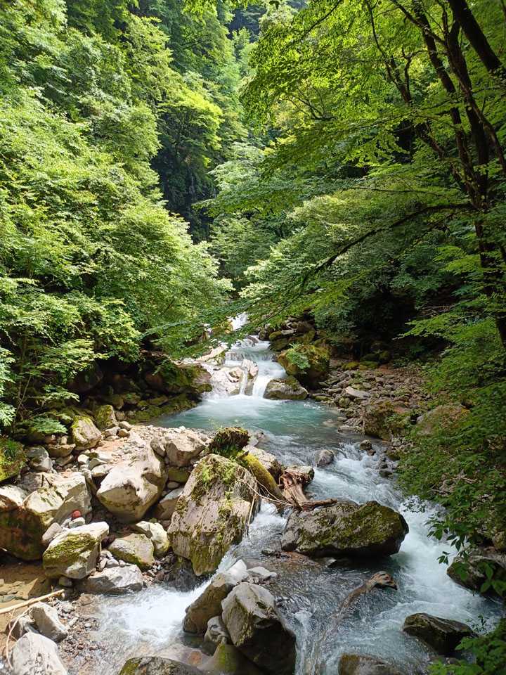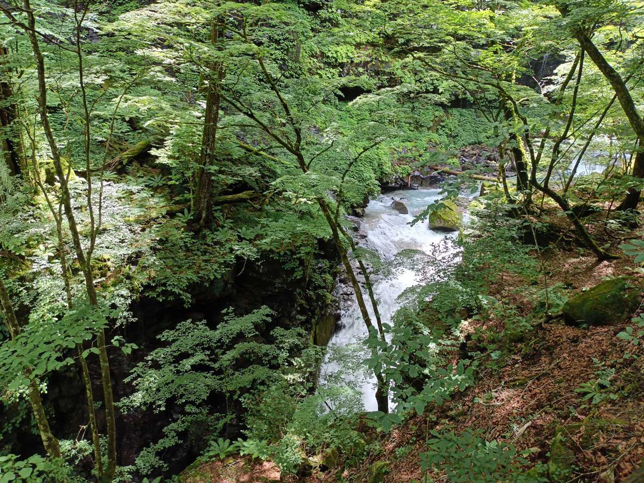 鉱物が入っているため水の色が青い渓谷というのは他にもいろいろありますが、このスッカン沢も「スッカンブルー」と呼ばれる青白い水が特徴です。