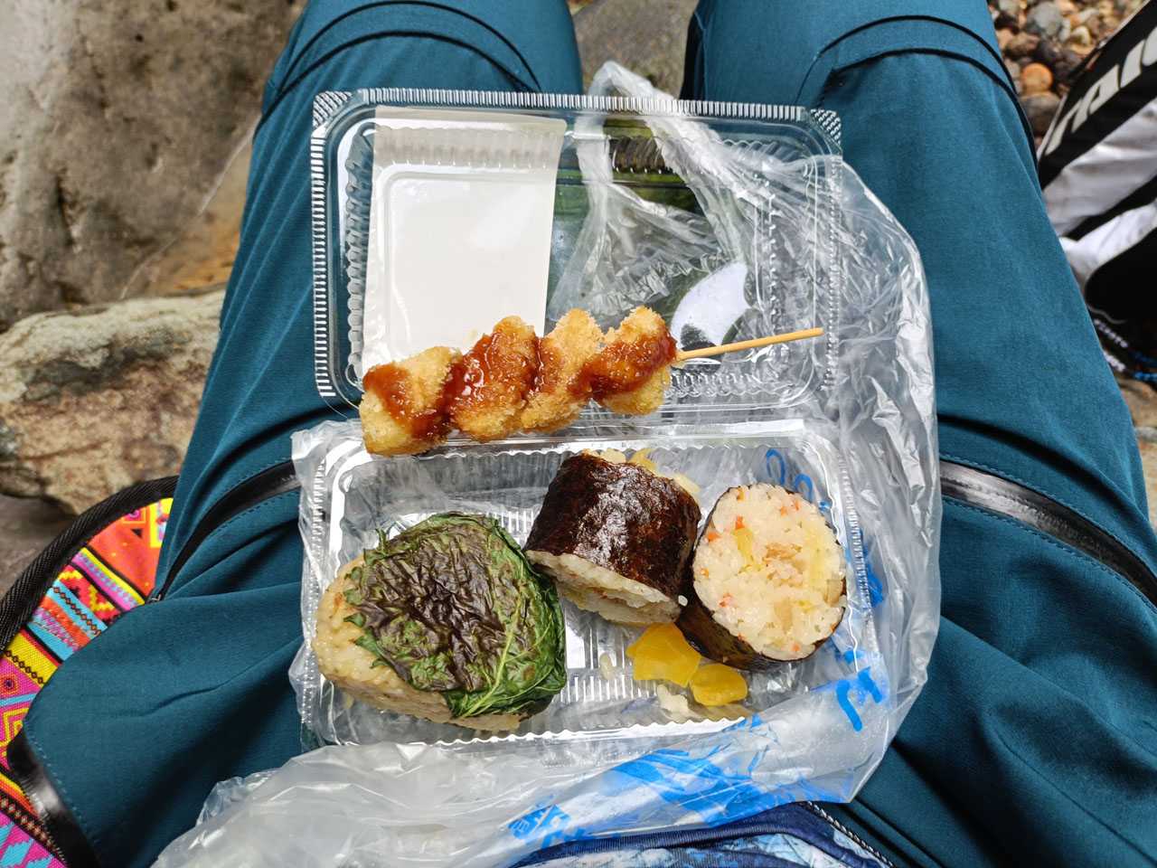 今回は折り畳みチェアをリュックに入れてたので、これを広げて昼食です。