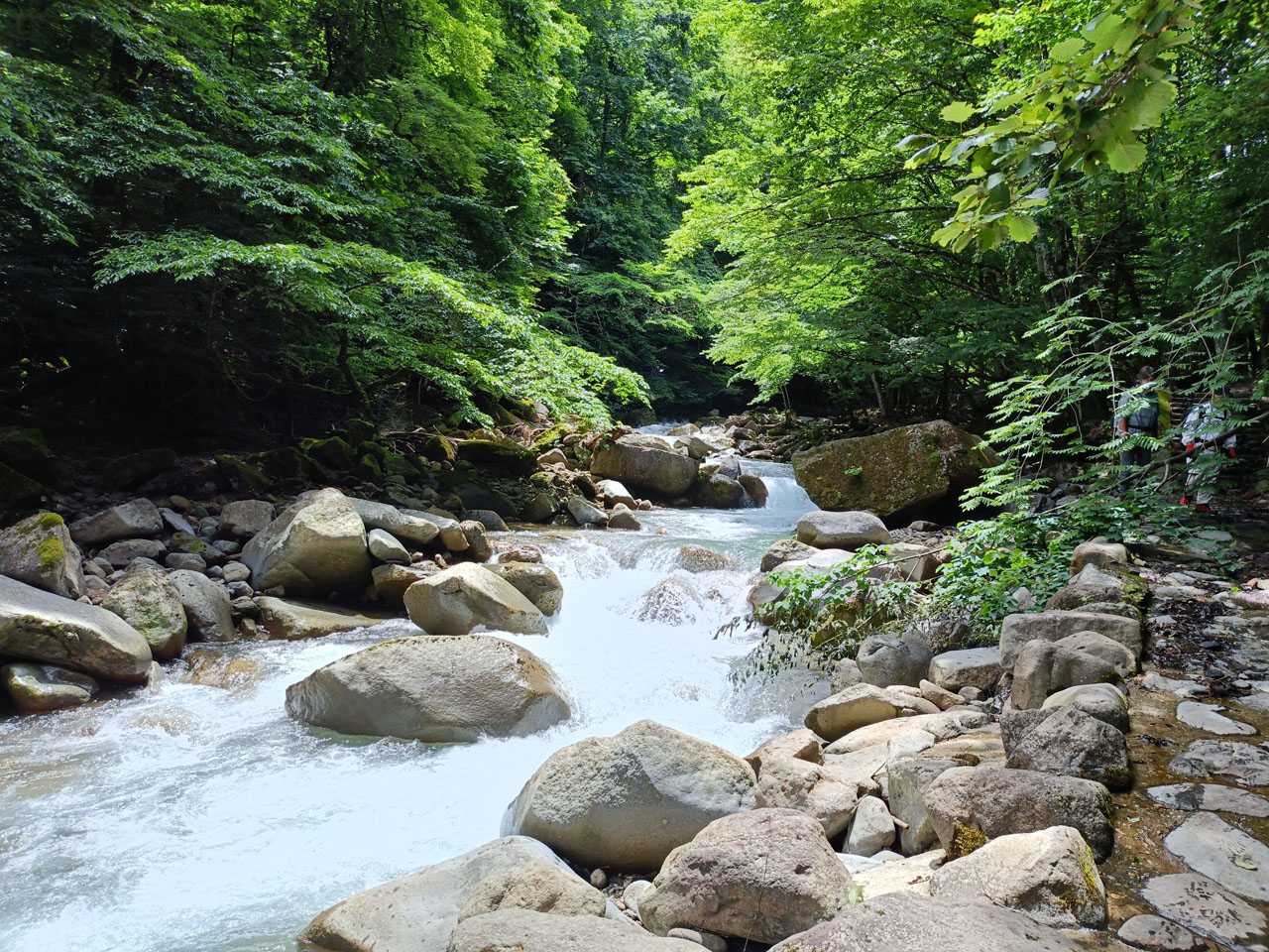 帰路は、途中仁三郎の滝の下流付近で沢に降りました。