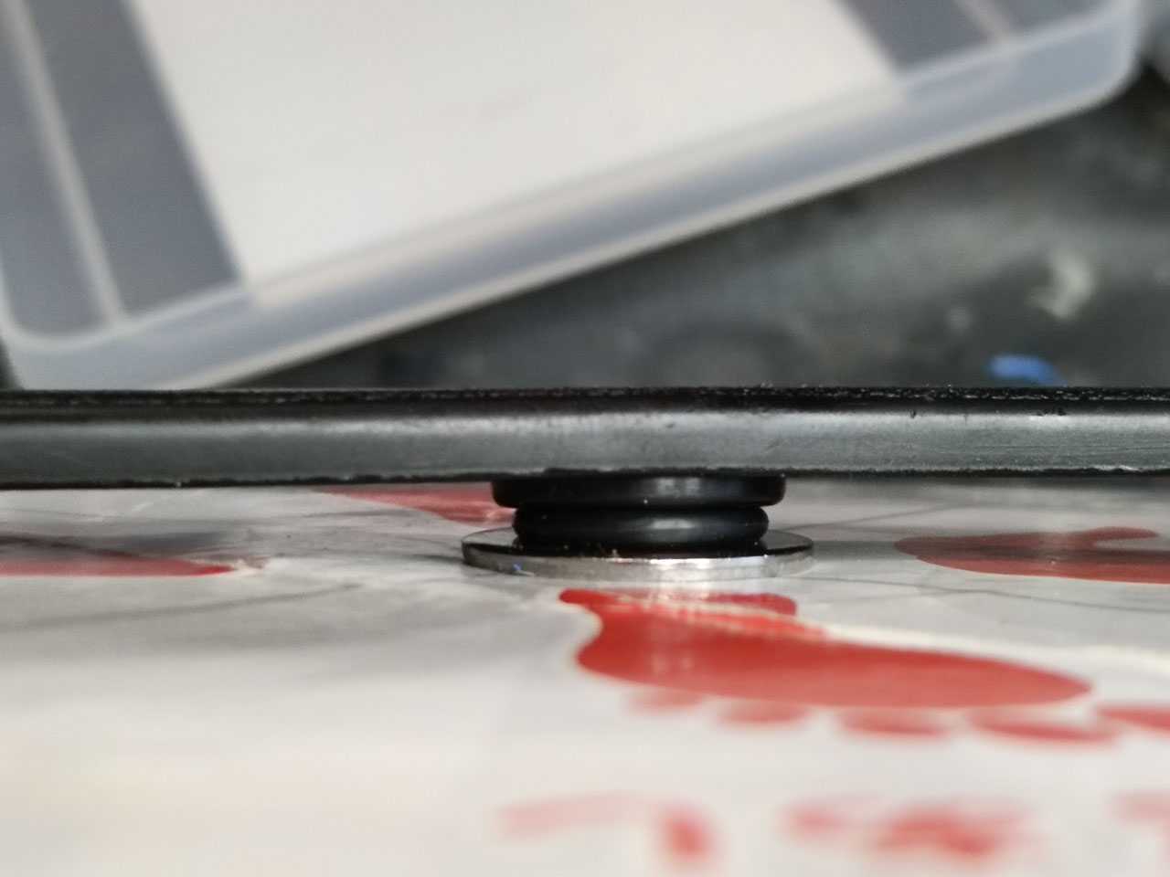 間に挟んだゴム製のOリングをカッターで切り取って抜き取って隙間を作ってあげます。