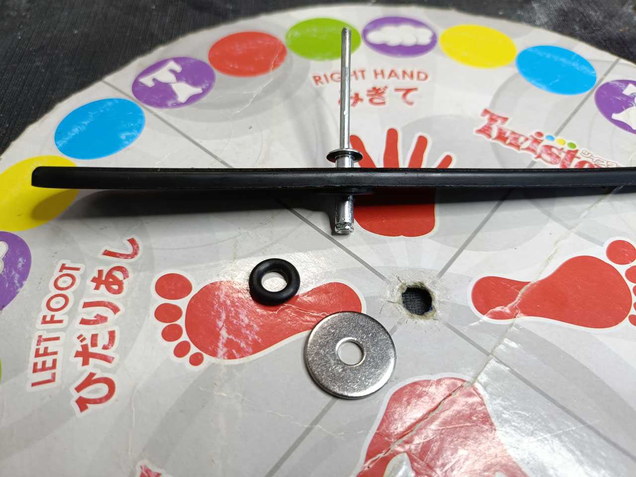 ワッシャを挟んでいるので、ブラインドリベットが開いても紙製のルーレット本体に食い込むことがありません。