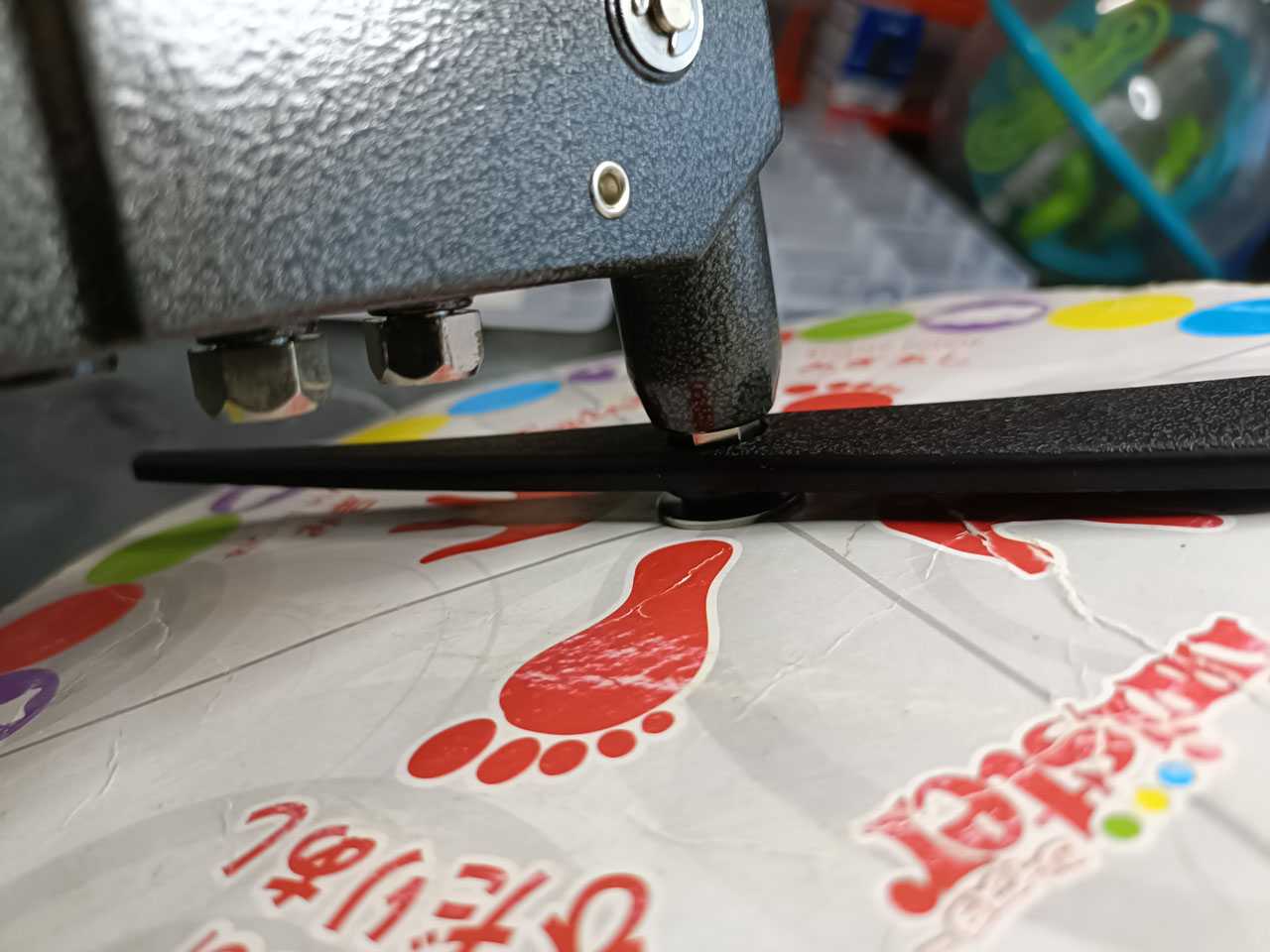 リベッター使って固定すると、当然ガチガチに固定されてしまって、針が回らなくなってしまうので、リベッターで固定する時には、ゴム製のOリングを間に噛ませます。