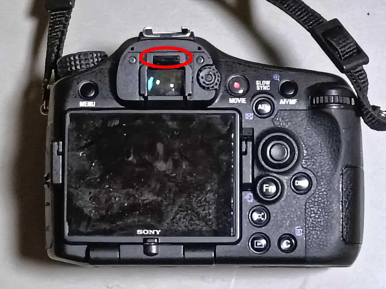 ただし、接眼センサーの位置が異なる(α77 Mk.IIはファインダー上部、α200は下部)ので、アイピースカップの形状が微妙に異なるから、一部カットしないと、接眼センサーが使用できません。