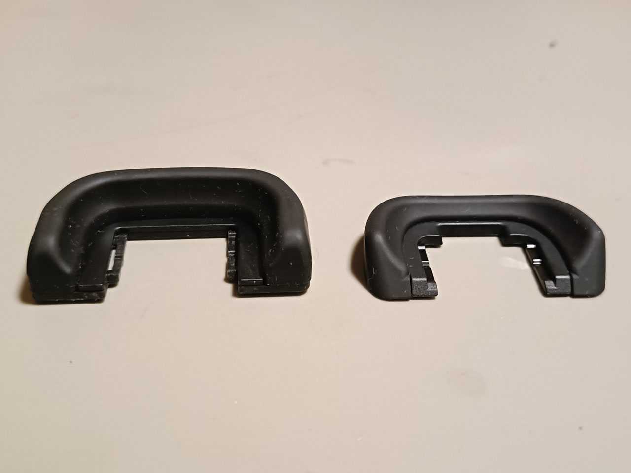 純正品はベースこそプラスチックですが、接眼部は空洞のあるゴムで覆われているので、ファインダーを覗いていても接眼部は柔らかいんです。