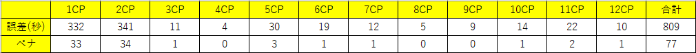 その他のCPでのペナはこれまでで最も少なかったので、初ナビにしては結構頑張った方ではないかと。