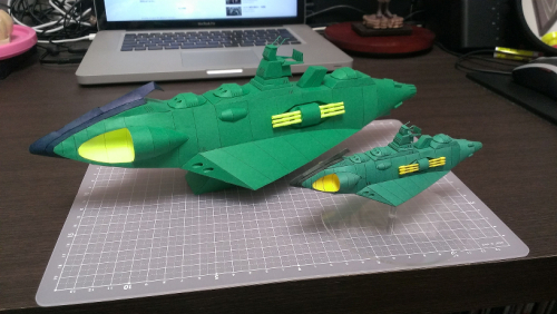 オリジナル1/1000ガミラス艦と。倍のスケールなんですが、ここまで違うんですね。ガミラス艦終了という事で、このままヤマトに行きたい所ですが、最近は、木彫をメインでおこなってますので、当分ないかと。そちらをアップしていきたいと思います。