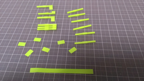 サイドの砲身をどうするか悩んでいました。一番理想なのは,プラモデルのガミラス艦のパッケージの感じなのですが,ペパクラで再現するのは難しいです。結局,ヤマトみたいな普通の砲身にする事にしました。12個作ります。