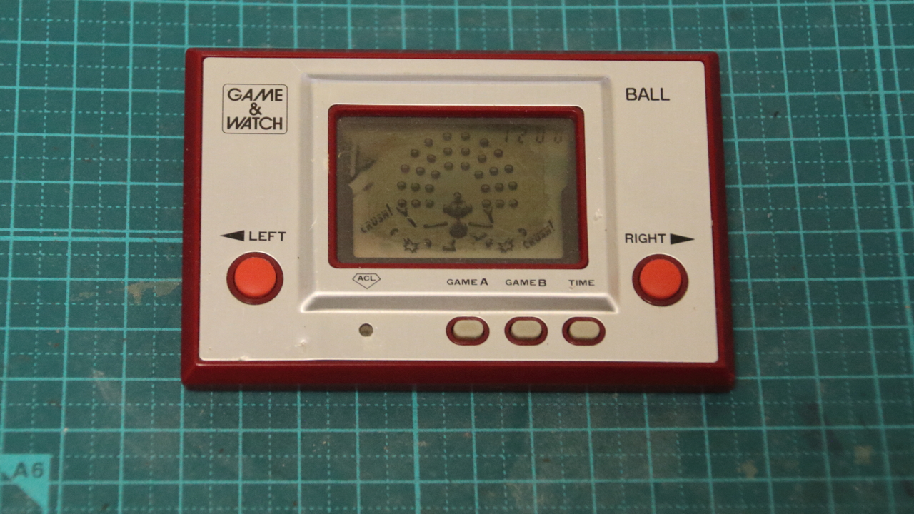 初代ゲームウォッチ、こどものころ発売から半年くらい小遣い貯めてボールを購入しました。そして現在も所有していますが。液晶自体も劣化していますが画面の中央から外側に向けて濁りがあります。これは偏光板が経年劣化で「ビネガーシンドローム」という状態らしい。お酢の匂いがするとのこと。液晶は修理は無理なので偏光板の取り替えを行っていきます。偏光板には反射シールがついているのでこちらも代用品を購入。本体の掃除も行い取り付け。さてうまくいくか?偏光板の方は成功。やはり液晶の方がヘタっていますが実用には問題ないレベル。一日中遊んでいた頃を思い出します。その頃のハイスコアは3333点。なぜかというと、分裂攻略はマスターしていて無限にプレイ出来るがちょうどお昼ご飯で切り上げました。今となっては懐かしい。ということで動画もYoutubeに上げますのでご覧ください。ゲームウォッチの液晶画面の修理を試みた
