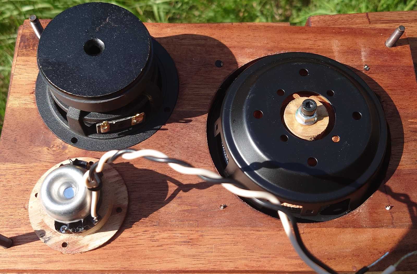パッシブラジエータはウエイト全くなしだと低域のピークは113Hzだったのでウエイト調整用部品(4.5g)を追加して、ツィーターも繋いでみました。