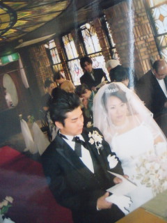 結婚式の写真。写真を写メったのできたないけどね。まずこれ式の写真ね。神父さんがおかしくてしかたなかった終始ぐだぐだ感あふれてました。はずかしながらおいらのアップ。お色直しの黄色いドレスね。すげぇ黄色いんだよ。へこむくらい。これが最後のお見送りの挨拶のときだけ着たドレス。さてとりあえずこんなかんじか。旦那さまの顔が終始引きつっているのは写真嫌いだからしかもわらってといわれてうまく笑えなくてしんどいかんじなのでつっこまないで。今の私の携帯ショボいんだ。データ来たらまたのせよかな。