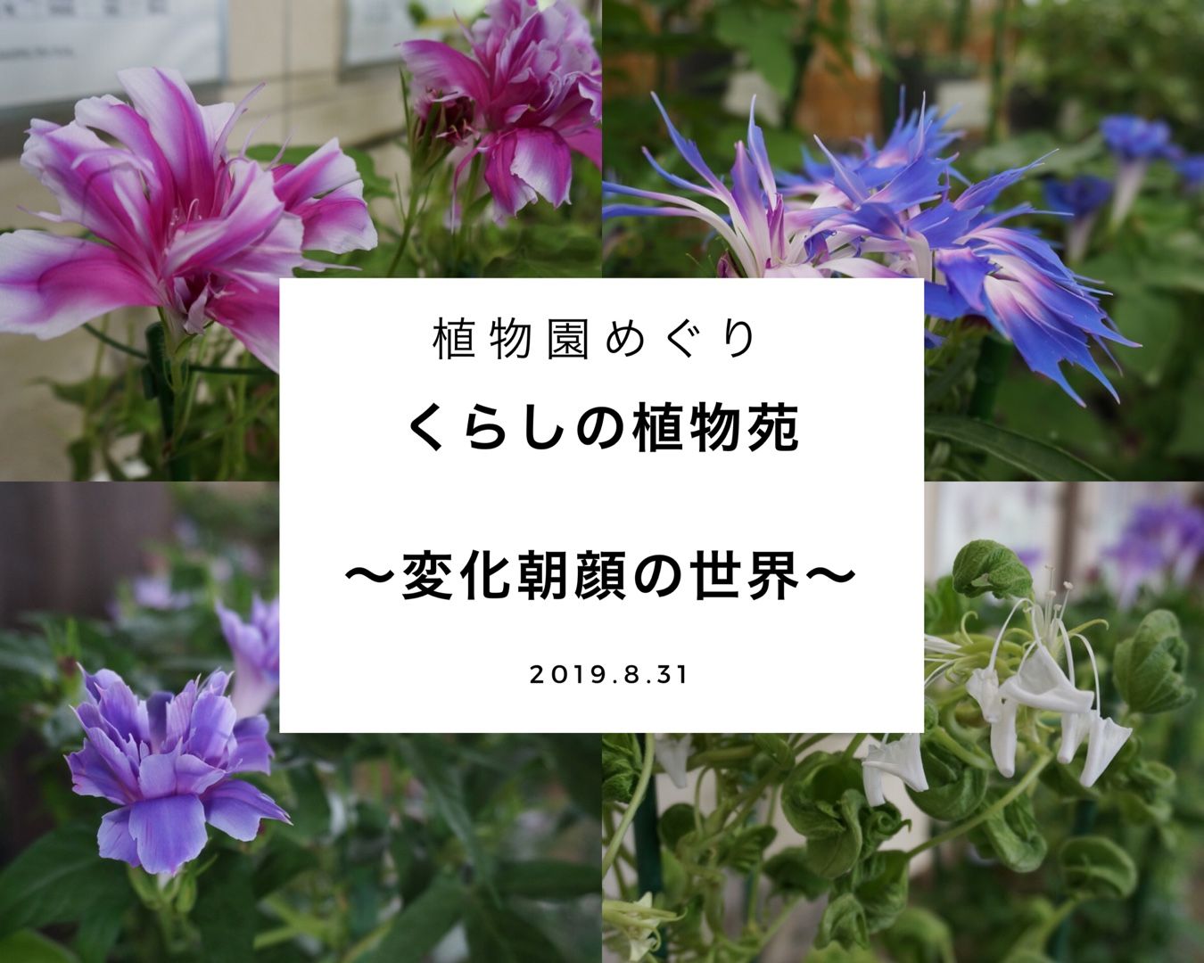 だいぶ行ってから日があいてしまいましたが…今年も滑り込みセーフで変化朝顔を見に行ってきました。くらしの植物苑(国立歴史民俗博物館▶くらしの植物苑HP)にて朝顔なので、朝イチ開館時間(9:30)と同時に入館します。それでも萎みかけている朝顔もすでにあります。朝顔は古くから多くの人々に親しまれてきました。元は薬草(下剤)として日本に入ってきたそうです。江戸時代の朝顔ブームによりあらゆる葉と花の多様な変化と組み合わせが作り出されてきました。変化朝顔は、一見「これが朝顔?」と思うような多彩な葉や花の形、色が魅力です!変化朝顔の名称変化朝顔には面白い呪文のような名前がついています。例えば、こちらの変化朝顔▼「親牡丹 青/林風/常葉 白/丸咲/牡丹」この名称の基本形は「葉の色/模様/質 + 花の色/模様/花弁の形/咲き方/花弁の重ね」を順番に記述していて、必要に応じて付加していく形になっています。一度聞いただけだと、なんだか呪文のように感じてしまいますが、実は見たままの特徴をわかりやすく並べた名前ということなんですね。そうして見ると非常にわかりやすい名前に思えてきます。変化朝顔は大きく正木系統と出物系統と分けられます。正木系統単純な突然変異がみられるもので、どの株からも種子ができます。比較的、変化が単純なタイプです。とはいっても、桔梗咲きや切咲、台咲や石畳咲など咲き方のバリエーションはかなり多彩です。「団十郎」黄/蝉葉 栗皮茶/丸咲/大輪個人的に一番好きな変化朝顔が、こちらの「団十郎」。存在感のある大輪の花と「栗皮茶色」と言われる花色の組み合わせが素敵です。「初霜」黄/斑入/蝉葉 浅葱/吹掛絞/丸咲/大輪出物系統比較的変化が単純で種子が採れる株と、花も葉も変化に富んでいるかわりに種子が採れない株にわかれます。形質上では通常隠れている劣性遺伝子という性質が、ある確率で形質にあらわれる。こうして珍花奇葉があらわれた株を「出物」と呼び、あらわれない株を「親木」と呼ぶ。親木からは種が採れるので、この種を蒔けば、再びある確率で、出物と親木が出る。出物系統はこうして維持できるのである。(くらしの植物苑 展示ポスターより)親牡丹青/蜻蛉/丸笹葉 紅/覆輪/切咲/牡丹親牡丹黄/弱渦/丸葉 紫/覆輪/丸咲/牡丹一重出物青/渦/柳葉 江戸紫/采咲牡丹出物青/打込/弱渦/柳葉 青/采咲/牡丹牡丹出物黄/握爪龍葉 白/風鈴獅子咲/牡丹株全体がうねっていて、葉は内側に抱え込むようにぐるりとうねります。花びらの先端は折り返していて管状になり、風鈴のような姿が特徴です。親木青/斑入/笹葉 茶/覆輪/車絞/切咲「渦小人」青/渦/しかみ葉/渦小人 紅/筒白/丸咲株や葉全体が詰まっていて、硬くてサボテンのような姿が特徴です。成長が遅く、伸びても15㎝程度にしかなりません。苑内では、その他の朝顔や様々なつる植物(ヘチマやメロン)も展示しています。また常設で昔から人々との暮らしに関わりのある身近な植物たちが植えられており、見ごたえたっぷりです。わたしは変化朝顔の時期しか訪れたことがないのですが、10月末からは古典菊、早春には桜草などの特別企画も行っているようなので、次は違う企画も見に来られたらいいなと思っています。