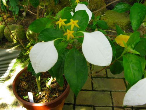 コンロンカ(崑崙花) 学名:Mussaenda parviflora科名:アカネ科白ハンカチ風まさか楽天売ってないでしょうね???いや売ってました~~(^_^;;(@_@)ウマノスズクサ科のアリストロキア・ギガンテアを売っていたのを見たほどには驚きませんがハンカチの様な葉がなんとも可愛い~(^^)~コンロンカ(ハンカチの木)お洒落陶器受け皿付【送料無料】八田陽介/ステーションホテル/崑崙花(コンロンカ)(CD)
