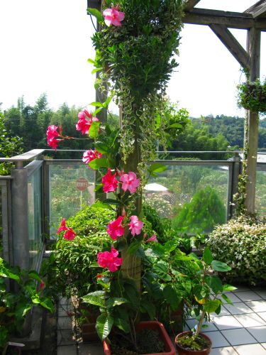マンデビラ(デプラデニア)です学名;Mandevilla x amoena流通名;デプラデニアサントリーのブランド名:サンパラソルマンデビラマンデビラ・6号開花鉢「アリスデライト」Mandevilla 'Alice Delight'矢祭生産のつる性植物 マンデビラ属サンパラソル レッド(6号鉢)