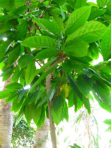 カカオです学名:Theobroma cacao科名:アオギリ科⇒『ウィキペディア(Wikipedia)』カカオを栽培食物としたのはマヤ文明である。西欧に持ち帰ったのは、クリストファー・コロンブス【フェスティバル0718×5】チョコレートの原料 カカオの木e-RANによると「大変珍しいチョコレートの原料の実が生るカカオの木観葉植物としても話題の熱帯果樹です。新芽の赤っぽい色彩とグリーンがとれも素敵です。お洒落に飾ってみませんか!全体の背丈180cm前後 2~3本植え花の咲くサイズです。幹に直接実の成る面白い植物です。」12600円ですかアオギリ科…というのが新鮮情報?┌(=^e^=)┘ └(=^O^=)┐ ┌(=^c^=)┘幹に直接実の成る面白い植物というと、ジャボチカバ栽培のページはAYAさん京都植物園でみましたがフトモモ科ですかどうも太腿をイメージしてしまう(^_^;;楽天市場で3万円ジャボチャカバ(ジャボチカバ) 特大苗 樹高約130cm《熱帯果樹苗》 【フェスティバル0704×10】矮性のジャボチカバはFlower&Green GARDENさかもとにありました10分の1の値段のようですが、…(売り切れ) 学名:Myrciaria cauliflora~幹に直接ひっつくように実が並ぶ、ユニークな熱帯果樹です~フトモモ科 半耐寒性常緑中低木(0℃以上) 原産地 ブラジル英名:Jaboticaba 別名:ブドウの木