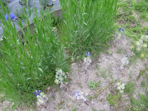 ヤグルマソウは元気がいいですが、カサザキルピナスはだめですね(=_=;)学名:Lupinus hirsutus 科名:マメ科ハウチワマメ属今から液肥をやるべきか~~参考書ですが、一番の参考書は■はじめての野菜の庭(飯塚恵子)1.小道を作る⇒野菜が根を張るスペースと人の通り道を分ける…アンティークレンガを敷く(作業をしやすくする足場、野菜を引き立てる縁どり)2.土づくり…堆肥、苦土石灰、肥料3.オベリスクやトレリス、支柱、仕切りを設ける…立体的な植栽をプラスして、育てる楽しさアップ…ウィグアム…インディアンの小屋のような形に枝を編んだ支柱果樹を植えよう…小果樹、ベリー菜園に合う花…ダリア、ジニア、ラベンダー、マリーゴールド、ひまわり、あさがお、葉鶏頭、コスモス、ワタ、フウセンカズラ◆いつもとれたて!ベランダ菜園 NHK趣味の園芸ガーデニング21■ラベンダー NHK趣味の園芸:よくわかる栽培12か月(広田せいこ)■初めてのハーブ作り定番50種NHK出版 NHK趣味の園芸ガーデニング21 これだけは覚えたい園芸作業上達のテクニックNHK出版 別冊NHK趣味の園芸 花・葉・実が美しい木を楽しむガーデニング花木入門