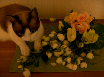首都圏に台風接近!この辺りでも雨、風ともに強まってきました。子どもの頃は台風が来ると休校にならないかな~とわくわくしたものですが。。。(我が家の息子達は今まさにその状態)できればあまり被害を出さずに過ぎ去って欲しいものですね。さて、先月購入を考えていたダイソンのクリーナーですが、その後シャープのサイクロンとかオキシゲンとかと比較して迷いに迷いましたがやっとこさ購入いたしました。機種は 付属品が一番たくさん付いているcompleteではなく、DC12 plus animailpro にしました。電器店で両者を見てみたら、completeだけに付いている「フレキシブル隙間ノズル」が、え~これですかという代物だったため。実際使ってみてその評価は。。。買って大成功でした~とにかくカーペットや布団についたにゃんずの毛がすっごい取れるんです初日に掃除したときは、ホント驚きました。「我が家はこんなゴミ屋敷だったの~」ってね。心配していた騒音や重さ、小回りの悪さはそれほど気になりません。狭い我が家ですので今までのクリーナーでもあちこちぶつけながら掃除していたものですからただね~、吸ったゴミが見えるだけに、掃除が終わったあとそのまましまうことができなくて。。。説明書にはクリアビンがMAXになったらゴミを捨ててくださいと記載されているのですが、どうしてもゴミを捨てて、クリアビンを綺麗にしてから収納したくなっちゃうんです。クリアビンは水洗いできます。けれど本体のサイクロンの部分は水洗い禁止なので布で拭くのですが、細かい部分に埃が残ってしまうんですね。それでどうするかというと、今まで使っていた掃除機を出してきて埃を吸い取るんです。これってどうよってかんじですよね。古い掃除機が捨てられないじゃありませんか。これが唯一にならない理由です。でもね、それを差し引いても今年一番の当たり商品です私も苦手な掃除が少し好きになってきたかも~迷っている方には是非お勧めです。次男のアレルギー性鼻炎はまだ改善していませんが、気長にこまめにお掃除していけばきっと良くなるような気がします。三日坊主にならなよう頑張りま~す