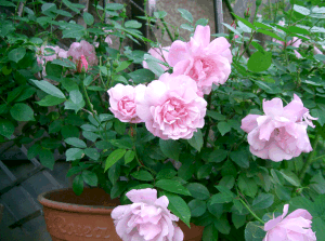 昨日はホントすごい風でしたね。朝起きて薔薇の様子を見に行ったところショックなことが・・・去年2メートルほどに伸びたピエールドロンサールのシュートが根元からポッキリと折れていたんです~これは一昨年の写真ですが今年はさらに枝が左右に伸びていたんです・・・咲きかけの蕾もあって今年期待の新人枝だったのに、なんてこと修復不可能なので根元からバッサリ切りました。そしてカットした花10数本は職場に持って行くことに~職場の方達、すごく喜んでくれました。私が薔薇を育てていることは話したことがなかったのでびっくりしたみたいです。「きゃ~可愛い(花)」「いい香り~」と嬉しい評価をいただきましたアロマを勉強している人がいて、「薔薇の香りは幸せになれる香りなんですよ」と教えてくれました。そうだったのか~喜んでもらえてよかったね、ピエール(*^_^*)