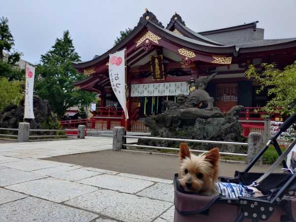 梅雨前半だというのに、雨の降り方はゲリラ雷雨。なんだかもう、紫陽花の葉にカタツムリ、シトシト降る雨、という梅雨はなくなってしまうのかもしれません。この日、朝から予定が入っていたので、おついたちのお詣りは夕方になってしまいました。じゅりは相変わらず、お詣りで少し離れると「ワンワン!」、写真を撮ろうと離れると「ワンワン!」。カートの元に戻ると「降りたいです」アピール。境内を歩かせるのはどうかと思うし、あまり騒がないうちにそそくさと帰ります。その後数日も、いつも通り朝に夕にお友達とおやつを楽しんでいました。が、この後ちょっとした体調不良が。次の記事に続きます。