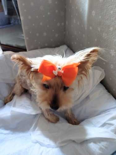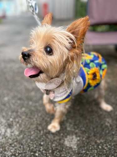 朝から暑かったこの日。いつも通り、みんなとワイワイな集会を楽しんで帰宅。(↑カートを掘りまくって、ご満悦)さて、午後まだ日差し強めの時間に訪れたのは、いつもの動物病院です。実はこの日は、さくら・じゅりと二代にわたりお世話になった、看護師兼トリマーさんの退職日でした。ヨーキーの飼育経験のある方で、とにかく動物の扱いが優しいので、ビビりのさくらも不慣れなじゅりも、安心してお任せできました。特にさくらの後期には、日ごろさくらの看護で目が離せず、スーパーにさえ行けない状況を察して、「点滴の間、お買い物に出て大丈夫ですよ」と飼い主の状況まで気遣ってくれる方でした。じゅりにいたっては、いつも可愛くカットしていただいた(↑)上に、院長先生の歯石取りも私の歯磨きも大嫌いなはずなのに、この方の歯磨きは「イイコでやらせてくれました」でした。ご挨拶に伺ったのですが、なんとさくらとじゅりのチャームをいただきました。さくらのことも思ってくださったこと、本当に嬉しかったです。素敵な方だったので、お別れはとても残念でしたが、これからもお元気にご活躍いただきたいと思います。