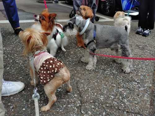 4月中旬の日曜日。朝ん歩メンバーと、昨年ご近所にできたわんこ店内OKのお店でランチ会をしました。貸切だったこと、いつもの慣れたメンバーであることからついついリードも緩み、わんこ達はすぐワチャワチャに。でもこの一言で、一瞬でいつでもどこでも「おやつ」は無敵です。そうこうしているうちに、人間のランチが運ばれてきました。気付いてしまったじゅりは、どのパパママも、ワンコのおねだりを搔い潜りながら食事するのはなかなか大変そうでした。(端っこだけね~、とかキャベツだけね~、という声がチラチラ)美味しいランチと楽しいお喋りと時々騒ぎが起きるワンコ達。あっという間の2時間でした。(レインコートで行ったので、じゅりがアンダーウェアだったのが…残念)じゅりのこれからに、楽しいことが沢山ありますように。