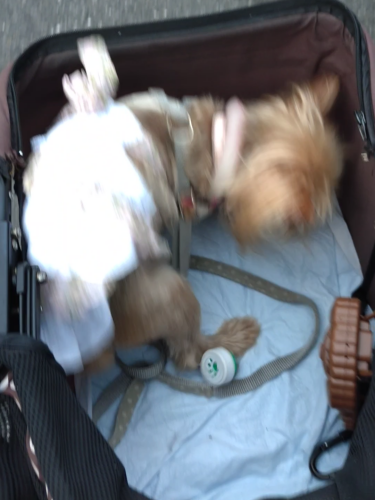 のびのび寝ているじゅりを起こし、電車に乗ってやってきたのは、家電量販店です(事前に電話でワンコ入店OKを確認済み)。実は前日に、晴れ続き&お友達の「カーテン洗ったよ」メールに触発され、カーテンを洗って3バッチ目が終わったところで、洗濯機がダウン。あと2バッチ分カーテンが残っているのに…。(でも洗っている最中でなくてよかった)メーカーに問い合わせるも「長い間お使いいただきありがとうございます。ですが…」そう、我が家の洗濯機は20年選手。修理不能ということで、買い替えることとなりました。先月windows11切替でPCを買い替えたばかりなのに、イタイ出費です。洗濯機は、洗う量と外寸が決まっていれば、選択肢は少ないので選ぶのに時間はかかりませんが、お店はかなりお客様が入っており、お会計も30分待ち。半数は外国人で、始終店内放送で「英語対応スタッフ」の呼び出しがされていました。じゅりは電車でもお店でもバッグの中でとってもイイコ。お買い物の後は。しっかりお散歩しながら帰りました。設置は2日後だったので、4日間、手洗い洗濯の日が続きました。冬でなくてよかったです~~。余談:お店では、お会計待ちの間、私には冷たいお水を、 じゅりには常温のお水を出してくれました。 対応してくださったベトナム人の店員さんの心遣いに、嬉しくなりました。
