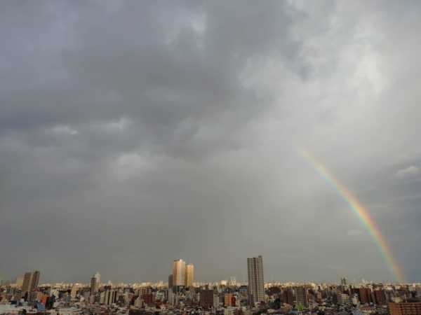 お一日だったので、お詣りに行きました。今回も、じゅりがいつ吠えだすかとハラハラしながらのお詣りです。(今回はお末社お詣り中に吠えました、、、申し訳ないことです)境内の梅に、沢山実がなっていました。夕方のお散歩では、前半でお友達に遭遇。立ち話をしているうちに、夕立が降り出してしまいました。走って帰宅すると、東の空に虹が。もはや「夕立」は夏のものではなく、どの季節でもあるようになりました。お散歩に出る時に降っていなくても、傘・レインカバー・レインコートを持って出ないと不安です。
