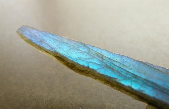 今晩はm(__)m昨日残業で本屋に行き損なったので今日は最近発刊になった地球の鉱物の実物を確かめに行って来ましたが…予想通りと言うか…実物は微妙でしたねぇ…(^_^;A←石は要らんからテキストだけ欲しいなw(爆)トレ○ャーストーンの時もコストパフォーマンス悪いなぁとは思ってましたが(ウチにある標本の価格は殆どが数百円程度の物なので)よっぽどな石が付いてこないと手が出せませんわwさて、本日の画像の石も\300でしたw…なコレ☆ ラブラドライトっす(*^。^*)去年の京都ではとても綺麗なラブラドライトのラフが出ていたのでついつい手を出してしまいました…の巻き其の四☆(爆)ラブラドライトと言えば昨日同僚にラブラドライトの研磨片をプレゼントしたらいたく気に入ってくれた様で…♪嬉しい事でありますv(*^。^*)それにしても今日帰って管理画面を見たら本日のアクセス数が通常の4倍でビビってしまいました………一体何があったんだ???σ(・_・;)Ihosy,Madagascar 12mm×58mm×7mm