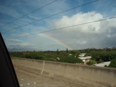 帰路、ホノルル空港に向かうハイウェイから虹が見えました!