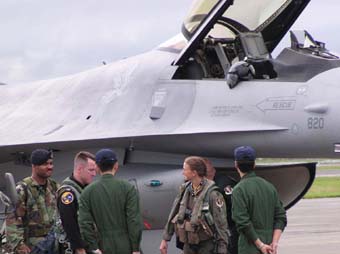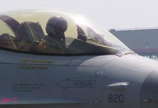 F-16戦闘機、パイロットの画像を拡大してみました。飛行を終えヘルメットをとった顔は、結構威圧感の有る顔をしていました。<今朝の吾妻小富士 くもり>