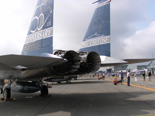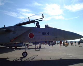 この画像は、F15戦闘機の背中を撮った所です。こんなアングルから撮るのは私くらいかな!・・・F15の機体一部がグリーン色しているところが有りますが、これは飛行中に燃料給油を受けるところで空中給油装置です。F15戦闘機の機体に入る燃料は、ドラム缶(200リットル)で50缶・50缶が入るのですョ!!・・・飛び方によって燃料は、あっとゆうまに無くなります。(アフターバーナーは燃料の垂れ流し状態ですから)・・・決して省エネ型でわないですね。<今朝の吾妻小富士 くもり>