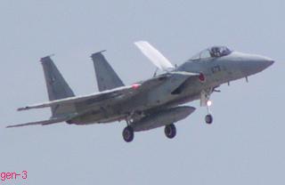 F15戦闘機が着陸態勢に入っている画像です。<今朝の吾妻小富士くもり>