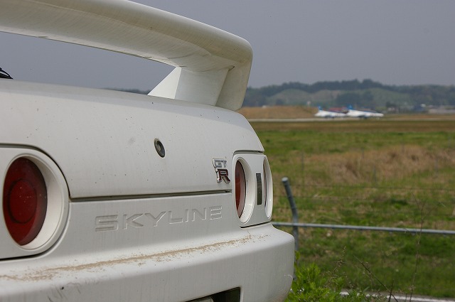 きょうも、文句一つ言わず松島基地まで連れて来てくれました。基地周辺は、未舗装の悪路を走行して来たので埃まみれです。愛車の後方に、白っぽくボヤケて見えるのが、ブルーインパルス1・3番機が離陸待機です。わたしの愛車・R-32が、きょうの主役なのです。 この場所は、貸し切り状態で他の一般車両は一台も通行しておりません。この道路は、2~3ヶ月前から河川工事が始まり通行止めになっているのです。この場合には、抜け道を使って入って来ました。実は、きょう撮影ポイントを4回も変えると言う最高記録を達成しました。何故ならば、この場所は風向きが変わると、離着陸シーンが全く見られなくなってしまうのです。 このR-32は、平成6年3月に新車で購入しました。子供の時から、日産スカイラインが大好きで大人に成ったら、自分で運転してみたい気持ちで一杯でした。日産は、この年の経営業績が最悪の時で、ニッサン大好き人間として決算月の3月に購入し売り上げに貢献と言う訳です。本当は、R-32最終モデルが3月末で販売終了になるためでした。 購入してから、更に、タイヤ・ホイル・マフラー・足回り強化・ブーストUP等など色々とお金を掛けました。外装は、羊でも中身はオオカミみたいな事を憧れたものです。車体カラーは、「白」が欲しくて営業マンに頼んでいたら、西日本の方で1台が見つかり何とか月末納車となり、それから13年が経過しました。 ところで、先程ブル―機の2機が飛び立っていったのですが、基地上空に機は無くレシーバーから隊長の声しか聞こえません。ブルー機の2機は、海上の飛行空域で訓練をしているのでしょう。やはり、この場所に、我が愛車は場違い・・・RV車がお似合いかも。秋には、新型GT-Rが発売されますが。ハマーH2も好きだ! でも、今日一日良く走りました。来月の17日にSEC大会が有るので、そろそろ準備しようと思いF-2やブルー機の飛行訓練を十分に撮ったあと、「WILD-1」によって新兵器がないかルアーを探しに入りました。すると、SEC大会に参加されている、フィールドテスターの中村 英一さんの顔写真と雑誌記事がルアーコーナーに貼ってありました。そこには、「クラッピーでつれないわけがない!」と書いてありました。思わず、その言葉で買ってしまうところでしたが、使っていないクラッピーが、まだ家に有ることを思い出してやめました。次は、○○市場がどんな雰囲気かを見て、ダイヤモンドシティ仙台に移動してショッピングをするわけでもなく、ただ、うろうろ歩き廻っていました。それから、最後に実家により、ちょうど精米したばかりの「ひとめぼれ」が有ると言う事で、その米を貰って帰宅しました。・・やれやれ・・ R-32・今日も一日お疲れさんでした。 <撮:07.05.09> まだまだ現役の日産GT-Rです。順位アップにご協力願います。ここを押して下さい。 「LFMC写真コンテスト2007’」 ←ここも押して下さい <今朝の吾妻小富士 くもり>↑画像をクリックして下さい。<ランキングUP>