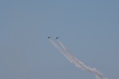 松島基地/今日の画像は、スリル満点の5・6番機が演技する「タック・クロス」です。順位アップにご協力願います。ここを押して下さい。 「LFMC写真コンテスト2007’」 ←ここも押して下さい <撮07.04.04> 「タック・クロス」ブルー機の2機が正面から進入して来て、反転して背面飛行です。5・6番機が交差します。スリル満点のシーですが、チョット引いてしまいました。画像が、大きかったなら「LFMC写真コンテスト2007’」 に間違いなく、エントリーするのですが残念です!この画像も、弱気虫が出てしまいました。<今朝の吾妻小富士 はれ>↑画像をクリックして下さい。<ランキングUP>