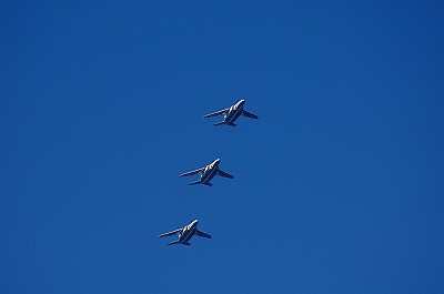 23.01.19松島基地外柵/ ブルー3機が、横一列に並ぶアブレスト隊形でローパスです。天気予報は、当たります。今朝起きたら、外は雪が降っています。来週、出撃できると良いのですが・・・