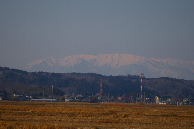 23.02.16松島基地外柵/ 今日は、田んぼ側からブルーの飛行訓練を見ることにします。セカンドで、上がっていたF-2戦闘機が次々と帰投します。今朝の吾妻小富士です。