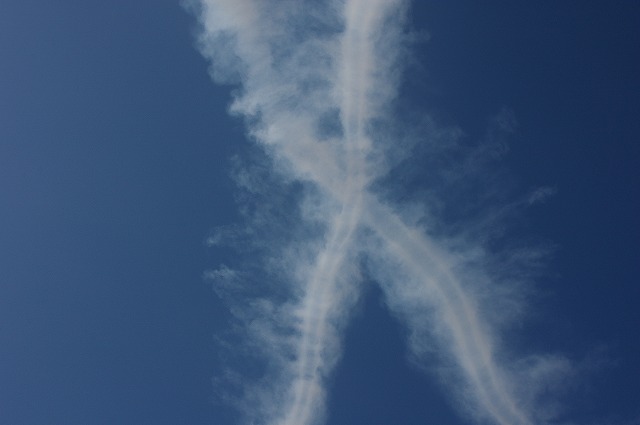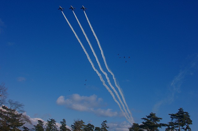 23.01.19松島基地外柵/ 写真は、カリプソの逆パターンで「バック・トゥ・バック」です機体のお腹とお腹を合わせた様にして飛びます。