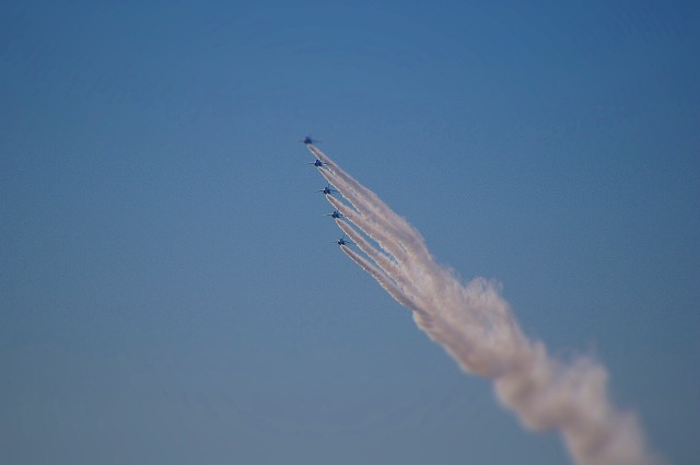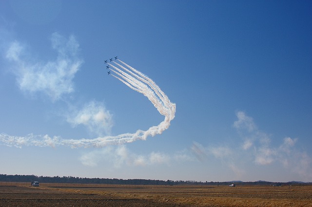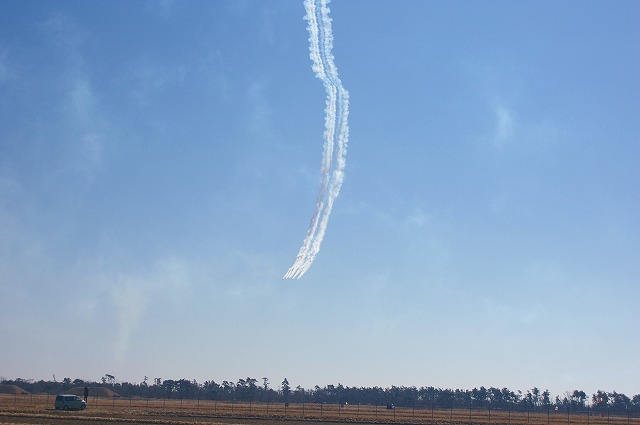 23.02.16松島基地外周/ ブルー5機が、急降下して来ました。松島基地外周/ これが、新課目「サンライズ」です。離れて見るとスモークの形が良くわかります!