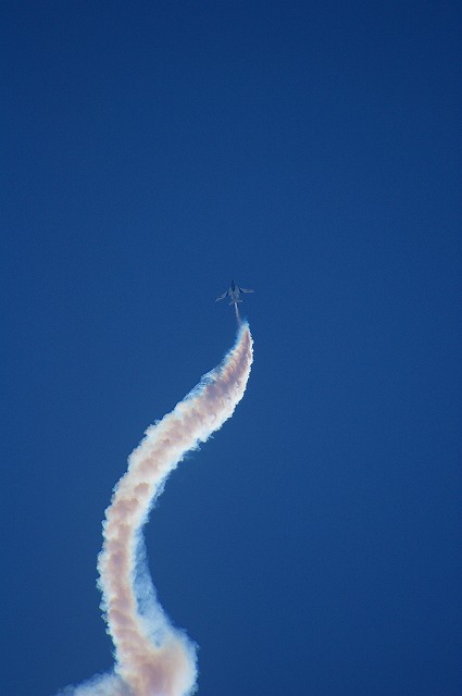 23.02.16松島基地外周/ この課目は、「バーティカル・クライム・ロール」です。またまた、要望ですが、もっと螺旋状のスモーク航跡が残る様にして欲しいです。松島基地外周/ スモークが、乱れているので小さい写真サイズでUPです。まあ、練習ですから、これから精度が上がって来るでしょう