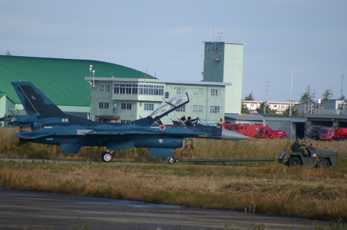 トーイング・トラクターに牽引されるF-2Bここを、押して頂くと嬉しいです