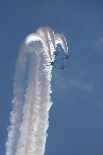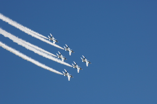 ブルーインパルスの飛行訓練風景。(松島基地:数年前に撮ったものです)ここを、押して頂くと嬉しいです