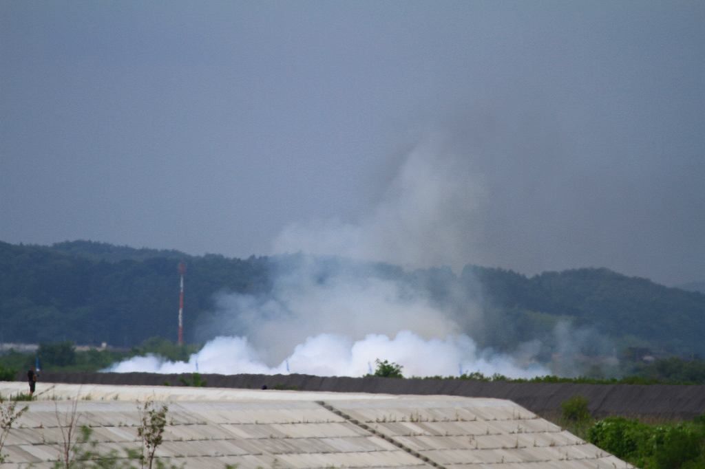 格納庫前に、消防車に多くの隊員さんたち消火訓練でしょうか。人気ブログランキングへ←楽しかったら、ここを押して下さいね