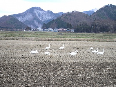 毎年、越冬の為何千キロも旅をして日本にやってくる白鳥達!!本日、猪苗代湖で白鳥に会いました。先日シベリアからの第1陣が訪れました。来春まで羽を休め田んぼで落穂などをついばむ優雅な姿を楽しむ事が出来ます。小さな子供連れの親子や孫を連れたおじいさんおばあさんが、白鳥のえさをあげながら白鳥の姿を楽しんでいます。一面が銀世界になるまで、たんぼの落穂をついばんでいる、彼らにも【げんき米】の落穂を食べさせたいものです。【げんき米】は、オーリングテスト(11/23の日記)・ダウジング・人体の前屈により並みの米でない事が証明できます。