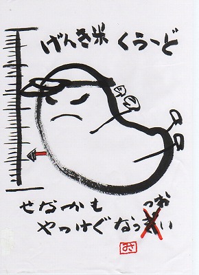 「前向き道」岸本正之さん出演 昨日「前向き道」岸本正之さん 感動のセミナーに参加しました。岸本さんは、すべてを前向きにとらえると楽しくなりますよと提唱しています。現在実践しているのは「ありがとう」を100万回唱えるを目標に毎日カウンターをして携帯し「ありがとう」を言い続けています。感動のセミナーでお会いした渡辺さんの「玄米スープ」のお勧めがありましたので掲載させていただきます。鈴木さんは、マクロビオティック(玄米菜食)を実践されている方です。「玄米スープ」の作り方● 洗ってない玄米(1合)をフライパンかホーロー鍋・土鍋で、玄米がこげないような温度で混ぜながら20~30分炒ります。● 美味しそうな臭いがして、キツネ色になります。油断すると真っ黒になってしまいますよ。● 炒った玄米と約8~10倍の水を鍋に入れコトコトと煮ます。● 好みで昆布、梅干などを加えて下さい。30分位弱火でトロトロにさせます。● 出来上がった「玄米スープ」に天然塩を入れ味を調え飲みます。● 「玄米スープ」と取った玄米自体には味はありませんが、捨てずにチャーハンなどで食べられます。● まとめて炒った玄米は、ビンに保存しておくとよいです。※ 「玄米スープ」は不思議にお腹が一杯になり、ダイエット効果があります。※ 勿論使う玄米は、有機栽培米・【げんき米】がお勧めです。