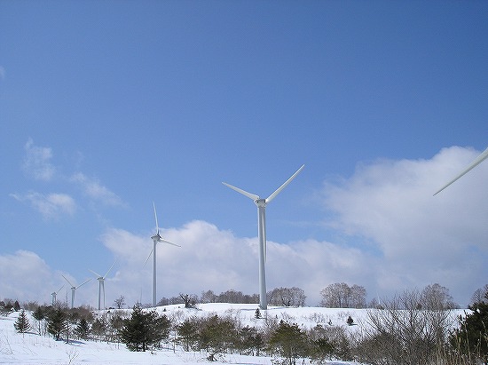 クリーンエネルギー郡山布引風力発電所完成!福島県郡山市湖南町の布引高原に国内最大級の風力発電所が建設されました。高さ100メートルほどの33基の風力発電機(ドイツ製)のが完成し営業運転を開始しました。布引高原は、郡山の中心部から西に約30キロ、猪苗代湖の南側に位置し標高は約1000メートルの高原で布引高原大根の産地です。この布引風力発電所は、国内最大出力の風力発電所だそうです。今年は、暖冬で雪が少なかったですが、ここ布引高原は別世界です。例年でも5月の連休まで雪が残りそり遊びなどができますよ。完成した33基の風力発電機は布引高原の風を受けて回っています。 現在でも雪の回廊が続きます。モンスターのような壁?! ※ クリーンエネルギーの風力発電・環境に優しい電力供給が望まれます。 作業には、雪の為車が使えずスノーモービルが活躍します。参照 郡山布引風力発電所の概要●郡山市の布引高原 風力発電所がほぼ完成
