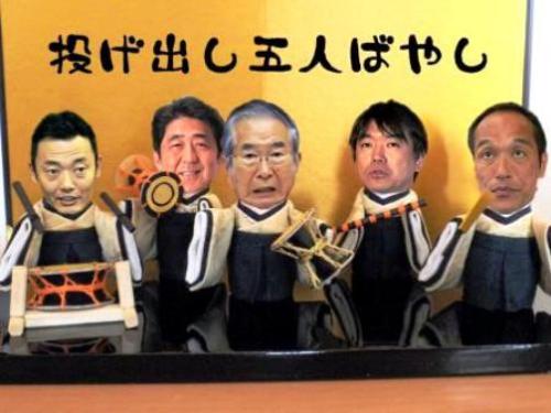 皆さん こんなリーダーで本当にいいのですか?総選挙告示(12月4日)までに10日になった!自公民プラス維新の大野合が囁かれている。何度か書いていますが、橋下大阪市長と石原慎太郎氏が権力ほしさに野合しました。維新の会の橋下徹氏は、原発・消費税・TPPを「些細な問題」だと位置付け、これらの課題に対する基本政策が二転三転する。脱原発を引っ込めただけでなく、最近は企業団体献金も容認しているのだ!昨日まで反対としていたものを明確な説明もなく突然賛成に変える。これは橋下氏の特徴か?ただひたすら権力だけを優先する政党であると言わざるを得ない。石原慎太郎氏は東京都政を投げ出し、国政へ転身!しかし、議員時代にオウム事件に深く関与していた事がバレそうになり議員を辞めた経緯があります。石原慎太郎氏の四男はオウム真理教の幹部で、麻原が瞑想していた座の後ろにあった曼荼羅は画家である延啓の作である。石原裕次郎の手術の執刀医がオウムの林郁夫であり、石原慎太郎の圧力でオウム真理教は宗教法人になったのです。さらに、検察当局との「司法取引」により、国会議員を辞職し不問に付したのです。さらに前宮崎県知事東国原英夫氏(そのまんま東)である。2010年、宮崎県に牛と豚の口蹄疫が発生、大騒動になった。その口蹄疫拡大は宮崎県の初動対応の遅れが原因であると伝えられているが、飯山一郎氏によると!この口蹄疫は、東らがペットとして輸入した違法水牛が保菌者だった。これを隠す為、豚の口蹄疫を大宣伝し、豚にワクチンを接種、その 豚を数十万頭も殺す!という大技に出たのだ。この大技の大騒ぎで、東らが輸入した水牛の責任は、雲散霧消!しかし・・・何十万頭もの豚を殺され、養豚業そのものを全滅させられた都農町や川南町の養豚業者の東国原知事への「怨み」は消えない・・・。いまも「アイツ(東)が口蹄疫の犯人だ!」との“恨み”は消えない・・・。その東国原英夫氏は、維新の候補者として立候補する。さらに維新の会には、横浜市長時代には横浜博(開国博)を大失敗に終わらせ、横浜市民に約100億円もの借金を残し、任期半ばで辞任した。中田宏氏がいる。 前高知県知事の橋本大二郎氏がブラックな↓ユーモアを発信している。橋本大二郎?@daichanzeyo維新の橋下さんと中田宏さんで、投げ出しコンビ、太陽の党の石原さんが加わって、投げ出し御三家、選挙後に安倍総裁が手をつなぐと、投げだし四天王、東国原さんもご参加だと、投げ出し五人囃子といった戯言です @OSA KAOSAKA「投げ出し御三家」 教えて頂きないなぁ どんな話しやろ?◆ 橋本大二郎ツイート自民党総裁についた、安部晋三氏の記事である。最近は自衛隊を「国防軍」とするなどと、過激発言をしている。前回の首相辞任は、体調不良が原因とされていますが、実は相続税3億円疑惑が原因だったとのことであります。さらに、『闇金融のドン』と称される山口組の幹部との付き合いが明らかになって来ました。以下記事を掲載します。◆ 安部信三 相続税 3億円脱税疑惑◆ 〈独占掲載〉安倍晋三「黒い交際写真」の謀略」本当に皆さん こんなリーダーでいいのですか?画像はきのこ組長さん作国民の生活が第一の小沢一郎氏には投票日までにぜひとも、維新以外の第三極をまとめて欲しいものです。そうすれば、安部総裁が提唱している対中、対韓関係が緊迫しているのに憲法改正や国防軍設置、集団的自衛権容認に踏み込もうとしているのを阻止する事ができます。自公民で過半数を得られなければ「国民の生活」を中心にした勢力が一定の数があれば、憲法改正は勿論、消費増税も原発、TPPも阻止できます。私達は今回の総選挙で「脱原発・反消費税増税・反TPP」の旗を掲げる政治勢力を全面支援しなければなりません。