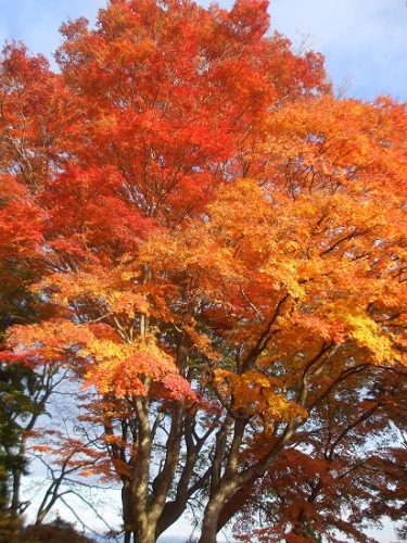 紅葉がキレイです!今年の夏は、あれほど暑かったが季節は確実に冬に向かっています。昼間は日光が強く、夜は冷え込むようになって来ました。寒暖の差が大きいほど、あざやかな紅葉になります。紅葉する前に枯れてしまっては困るので、適当に水分の補給(雨が降る)がある事も必要です。今年は、猛暑の影響で紅葉が1週間ぐらい遅れているそうです。紅葉になるのは・・・葉の根元と枝の間に、「離層」という組織ができ、そこが次第に「コルク状」に固くなってきます。そうすると、葉で作られる栄養が枝にいかなくなったり、葉に水分がいかなくなって、紅葉が始まります。 ● 赤い紅葉 カエデやナナカマドでは、秋になって「離層」が発達すると、葉(光合成)で作られた糖分が、幹に送られず葉にたまるようになります。葉が5~10度くらいに冷え込むと、この糖分を原料にしてアントシアニンという赤い色素ができ、緑色の葉緑素が減ってくるのにあわせて、赤く葉が色づき始めます。