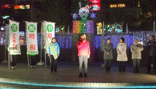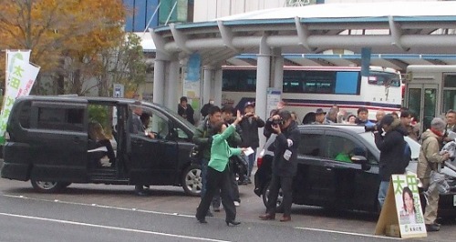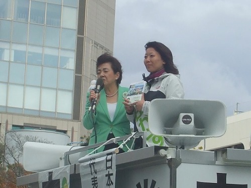 日本未来の党を!福島県飯舘村で第一声を上げた「日本未来の党」の代表嘉田由紀子代表が南相馬市から郡山市駅前に駆けつけました。嘉田由紀子代表の第一声は、田中龍作ジャーナルさんの記事を参照下さい。↓◆ 未来の党・嘉田代表 飯舘村で第一声 「原発をなくすため福島から始めた」日本の前途を暗示しているのか?朝から叩きつけるような冷たい雨が降り、雷もなった!師走の寒さの中「日本の未来の党」が本当に私達国民を守ってくれるのだろうか?そんな思いで郡山駅前で嘉田代表の到着を待つ。※ 嘉田代表が到着した!「日本未来の党」の嘉田代表が応援演説するというので、報道陣も多数詰めかけていました。嘉田代表は、滋賀県での実績を話された。大企業優先の事業を止め、県民優先を貫き通しました。しかし、原発をはじめ地方でできる事には限界があります。国を巻き込まないとできない事が多すぎると感じ、今回、日本未来の党を立ち上げたそうです。滋賀県には琵琶湖があります。このままだとその琵琶湖を守る事ができない、「汚したくない!」と言う思いで動いたのです。福島から日本の再生を始めよう!と呼びかけました。「鉛筆持ったら未来の党!」を合言葉にしましょう!嘉田代表が呼びかけた!!鉛筆じゃなく「ボールペンで書きましょう!」投票で不正を防ぐ為にも皆さん!ボールペンを持って投票所に行きましょう!と声が上がった!● こんな興味深い記事もアップされています!文殊菩薩ブログ版より、新井信介さんの記事である。◆ 未来の党、嘉田由紀子は瀬織津姫(アマテラスの荒御魂)の化身。そこに国常立が動いている。