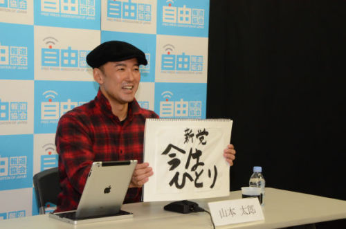 山本太郎氏衆議選に出馬!脱原発の為に戦ってきた俳優の山本太郎氏が、昨日 新党「今はひとり」を結成し今回の衆議院選挙に立候補します。以下、田中龍作ジャーナルさんの記事を掲載致します。山本太郎氏出馬 「枝野・細野・野田は戦犯、僕は首狩り族になる」 2012年12月2日 00:35 衆院選出馬の記者会見で新党名を発表する山本太郎さん。=1日、ニコ生スタジオ・原宿。写真:田中撮影= 仕事を干されながらも脱原発のために戦ってきた俳優の山本太郎氏が、新党を結成し衆院選挙に出馬する。本人が1日、都内で記者会見を開き明らかにした。 山本氏は出馬の動機を次のように語った―― 「自分自身、政治家になりたいという気持ちはない。ヤクザな世界だから。そういうところに身を置くのはしんどい。でも、1年8か月(脱原発の)市民活動をしてきて、一票も漏らしてはいけないと思うようになった」。 「(マスコミ報道では)争点の脱原発が一番に押し出されていない。これ、大命題なのに」。 「福島第一原発は収束の仕方がわからない。燃料見つけられない。漏れ続けている。今日本は地震の活動期。鳥取、阪神、中越地震など。日本を取り囲む4つのプレートが揺れ続けている」。 「もともとでたらめだった原発を平気で動かそうとしている。1%の人がおいしい思いをするために、99%の僕たちが生贄になる。脱原発、反TPP、反消費税と共闘していきたい」。 新党の名称は「今はひとり」。その名のごとく党員は山本太郎氏ひとりだ。脱原発で奔走してきた太郎氏のことだから「未来」から立候補すると思った人も多いはずだ。 諏訪:一人で出るメリットは? 山本:どこかの党に入ってしまうと党のカラー、歩調に合わせなくてはならない。一人だと問題に対してストレートによどみなく伝えられる。 『出ないか』と、いろいろな党のいろいろな方々から言われて会った。脱原発、反TPPについて民主、自民、公明、維新はクロ。『みんな』はグレーにしといてください。これらの党は日本を売り渡そうとしています。大国(アメリカを指す)の利益になります。今挙げた党はこの国に住まう者たちには目が向いていない。 山本氏は国会内での会合にもよく顔を出していた。=4月、議員会館。写真:田中撮影= 田中:どの選挙区から出るのか?原発を再稼働させた仙谷さんは徳島1区で凄く評判が悪い。徳島1区で出れば勝てるが… 山本:仙石さんはもう終わった政治家。祭りにしないとだめなんです。一番強い相手とぶつかりたい。3.11以降の悲劇に追い込んだ張本人は民主党。枝野さん、細野さん。この国のすべての人を被曝させた民主党は戦犯です。首狩り族の一人として僕は行く必要がある。野田さんもそうです。ケジメをつけに行ってやろう。 原発を止めたい一心で、子供を守りたい一心で、好きでもない政治の世界に飛び込もうとしている山本太郎氏。記者会見が終わると、都知事選に立候補している宇都宮けんじ氏の応援に向かった。 《文・田中龍作 / 諏訪都》※ 昨夜、『日本未来の党』の候補者の集会に参加しました。